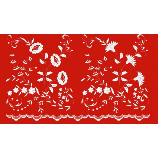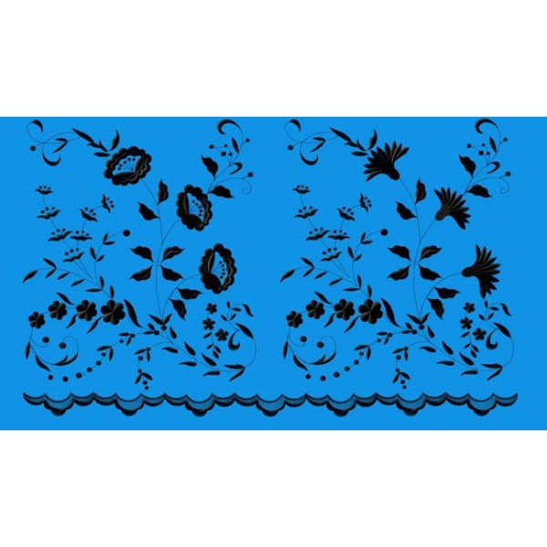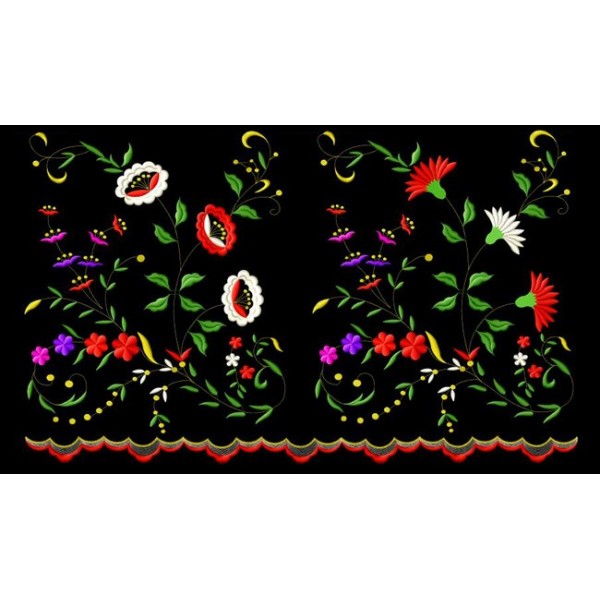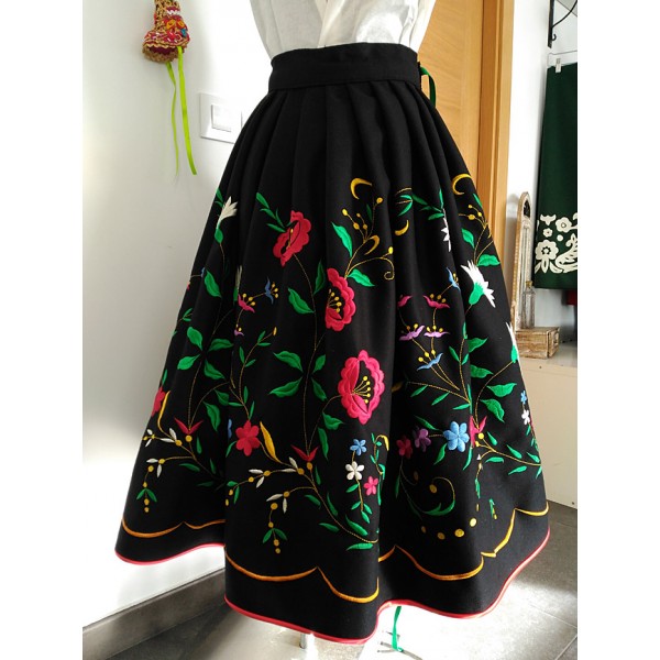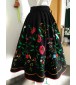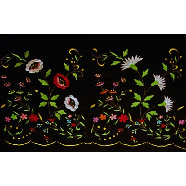 Corte para falda bordada sobre paño de lana de Béjar con diseño de claveles y motivos florales.