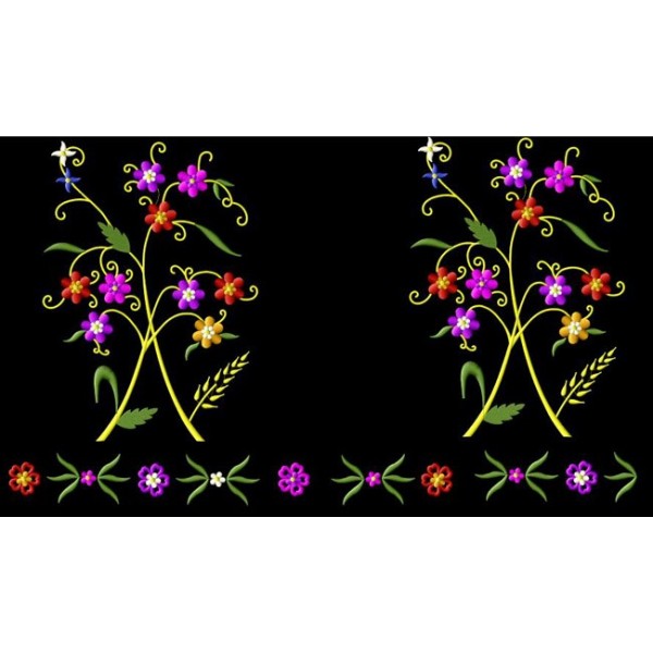 Corte para falda bordada sobre paño de lana de Béjar con diseño de Ramos florales.